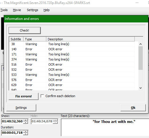 Between I check few srt subtitles from Subscene and not have to short display and overlapping errors  :).