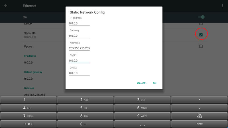 Don't forget to check static IP, when DHCP is disable, by default is not check.